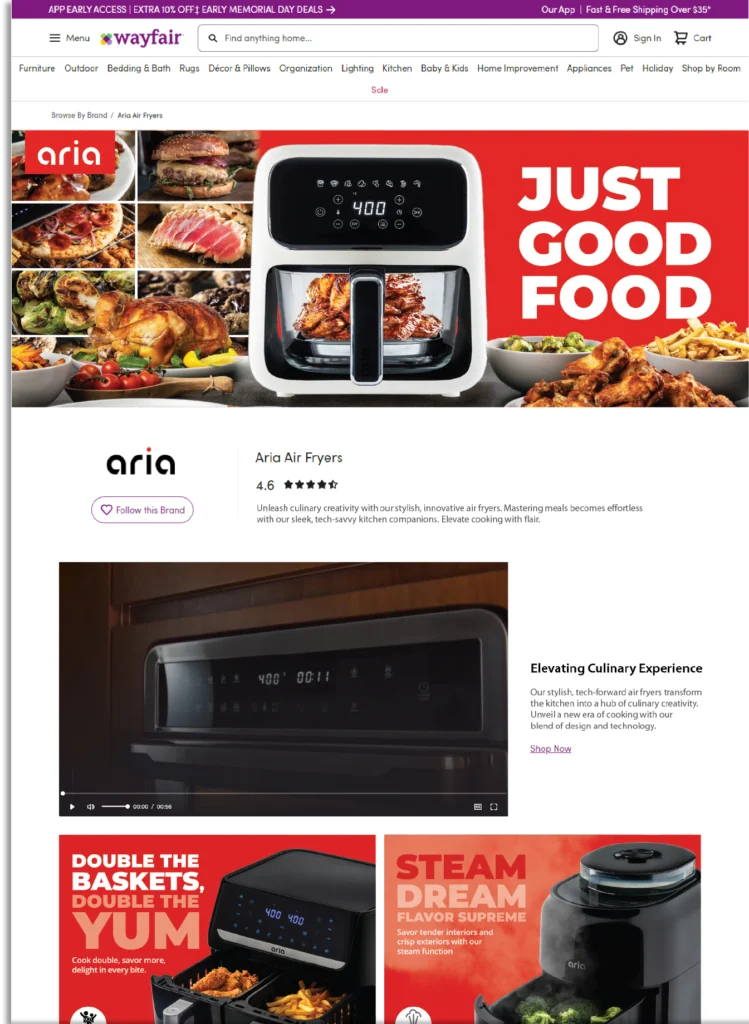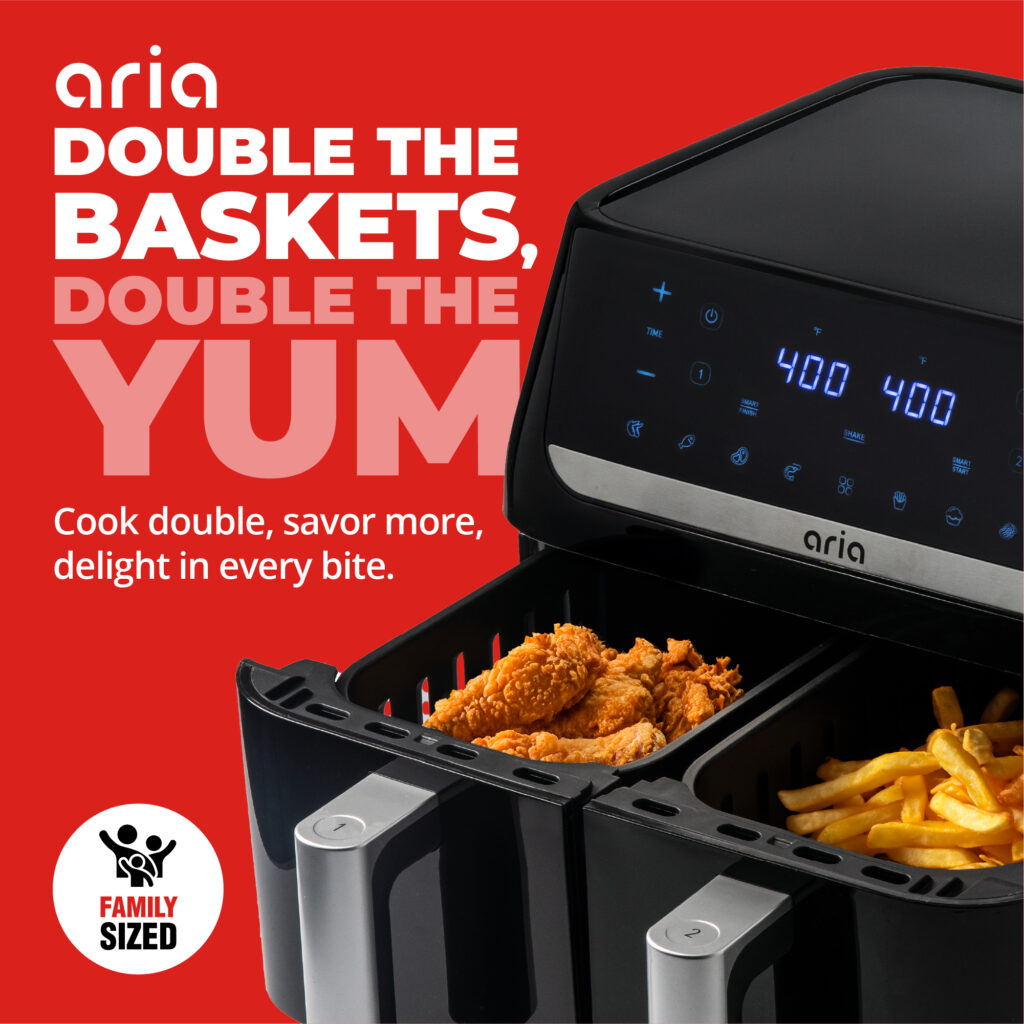 The Aria Air Fryers project melded technology with contemporary design, drawing inspiration from casual dining aesthetics for a stylish, healthier kitchen alternative. Each element in this omni-channel marketing approach, from online graphics to E-Commerce, was meticulously crafted to ensure a cohesive and appealing brand experience, positioning Aria Air Fryers distinctively in the marketplace.